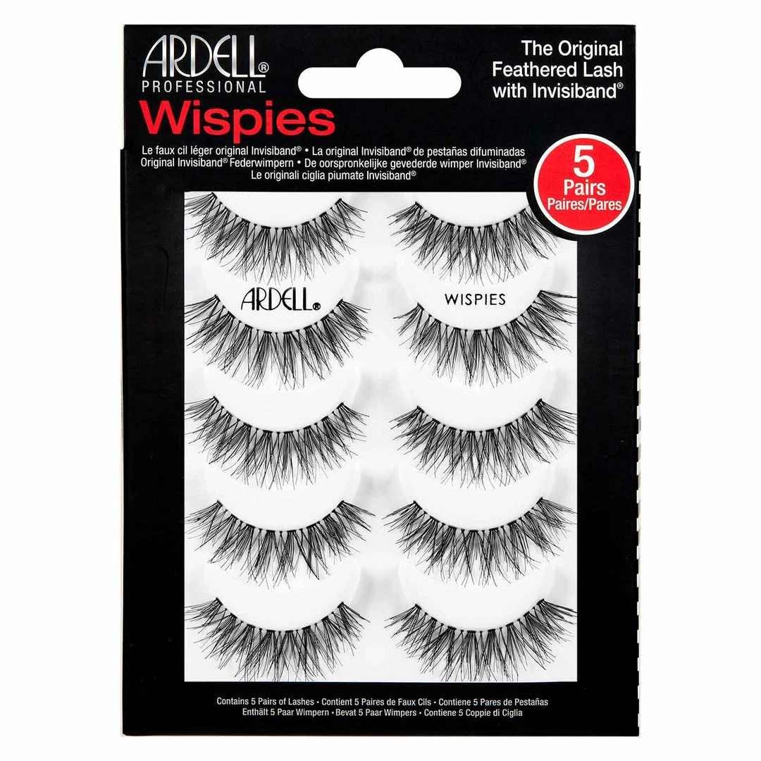 Wispies feature medium volume with long length, a rounded lash style that is shorter at the inner and outer corner with signature crisscross pattern, feathering and curl. It is also on Ardell’s legendary Invisiband®; providing an undetectable lash band and the most comfortable wear.