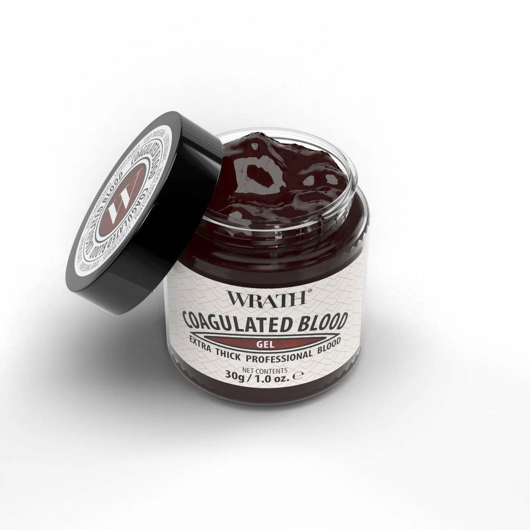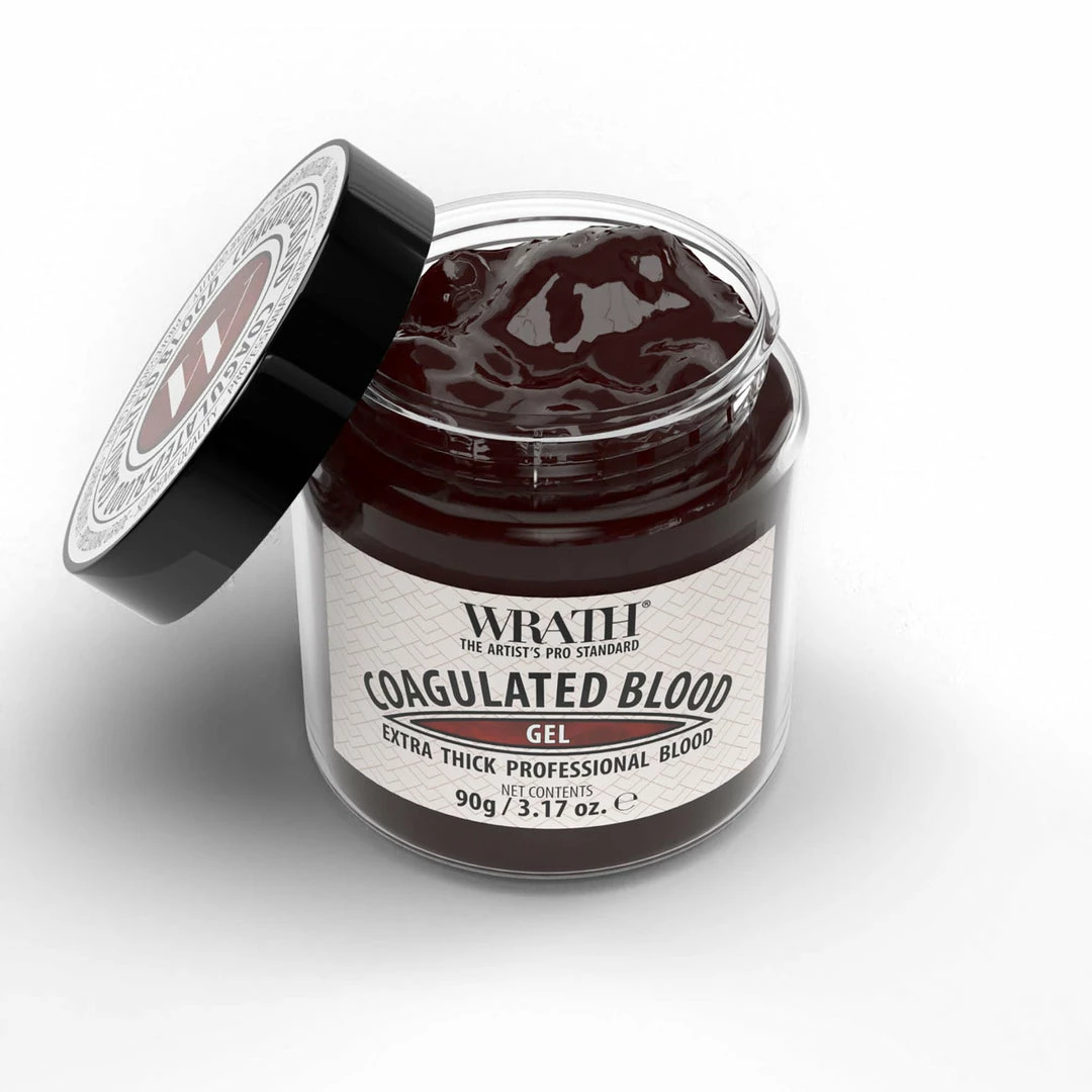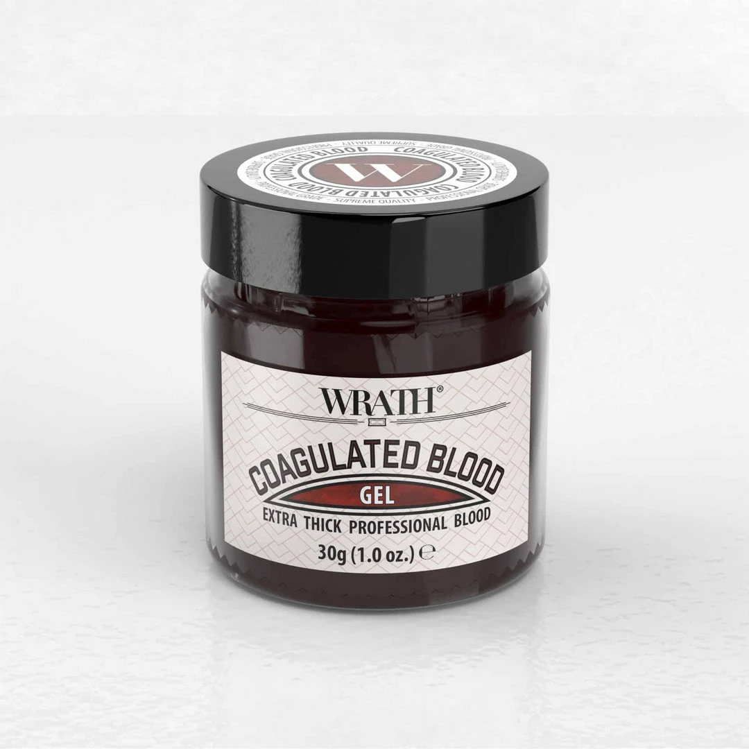 WRATHÂ Coagulated Blood is an extra thick fake blood gel that is ideal for all professional applications. It’s extra smooth and glossy finish offers unbeatable realism, and its very low flow rate ensures that your gory creation stays in place.