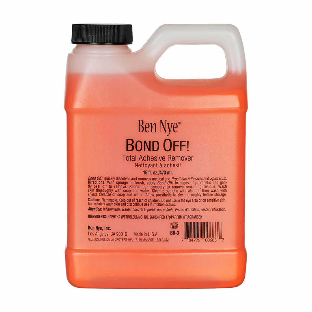 To use, apply Bond Off! with either a sponge or brush to the edges of the prosthetic or crepe hair (or appliance); then gently peel off to remove. Repeat as necessary; brushing Bond Off! further under the peeled edge of the appliance if required. Apply more Bond Off! to completely remove all residue. Then follow with a gentle wash with soap and water, or Hydra Cleanse.