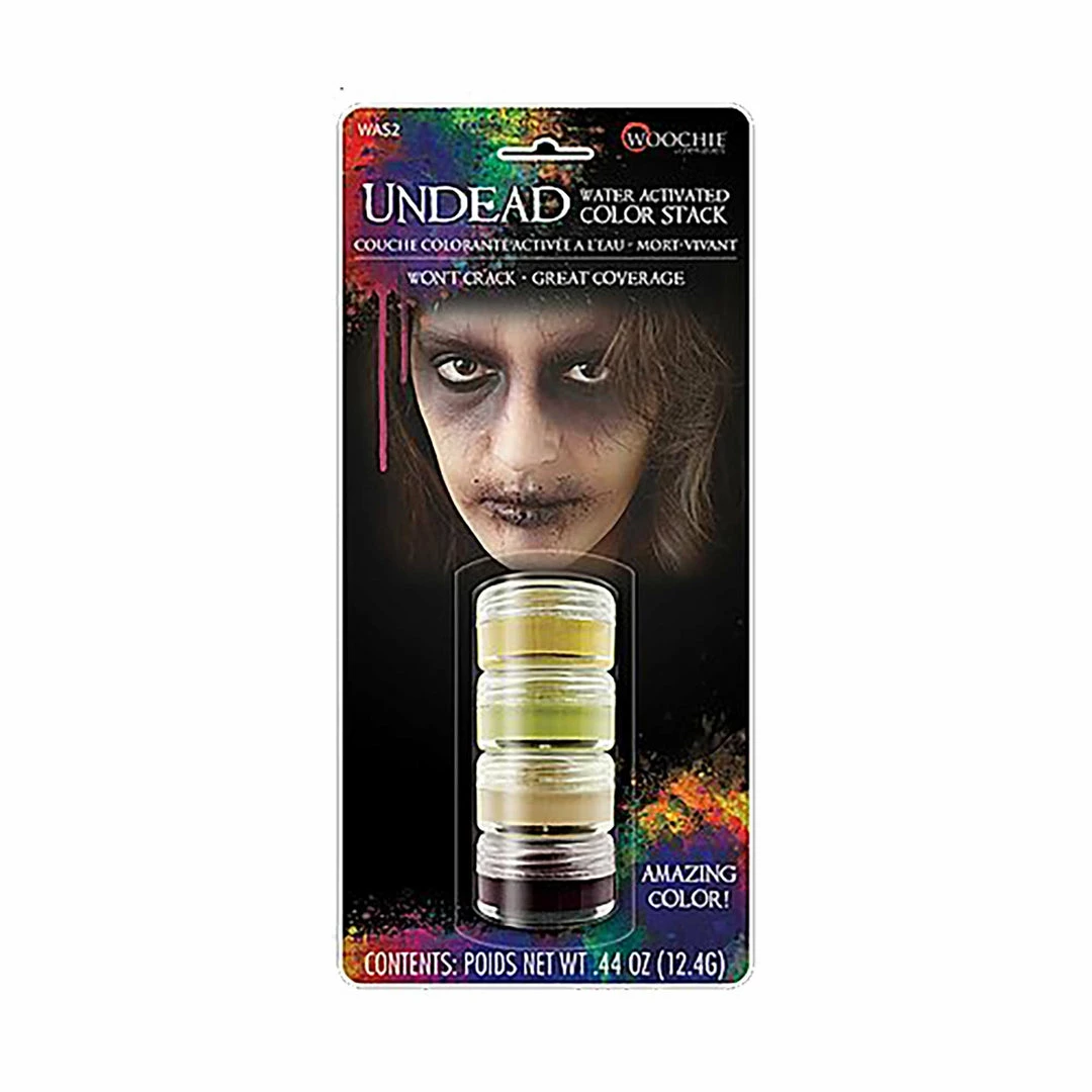 Each stack is complete with 4 colors of water activated makeup. Woochie by Cinema Secrets specialises in special FX makeup and prosthetics that allow both makeup novices and heavy makeup users to create custom characters through the use of makeup.