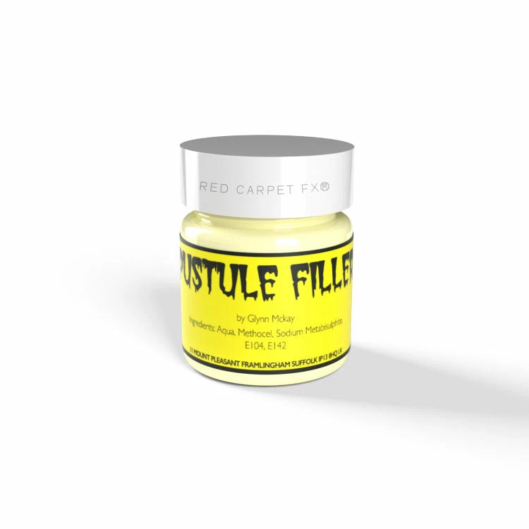Glynn McKay pustule filler is a synthetic puss simulation product that is ideal for use with pustules, blisters, oozing wounds, burns and more.