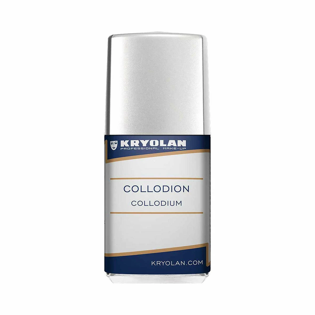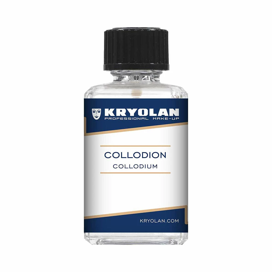 Collodion is a classic product for creation of simulated scars (also known as Scarring Material). Collodion, which dries extremely fast, is first applied to the skin, the skin is then pressed together to form a fold. The optical impression of a scar results by puckering wrinkling and creating a realistic scar effect. The artificial scar can be coloured with a face and body paint.