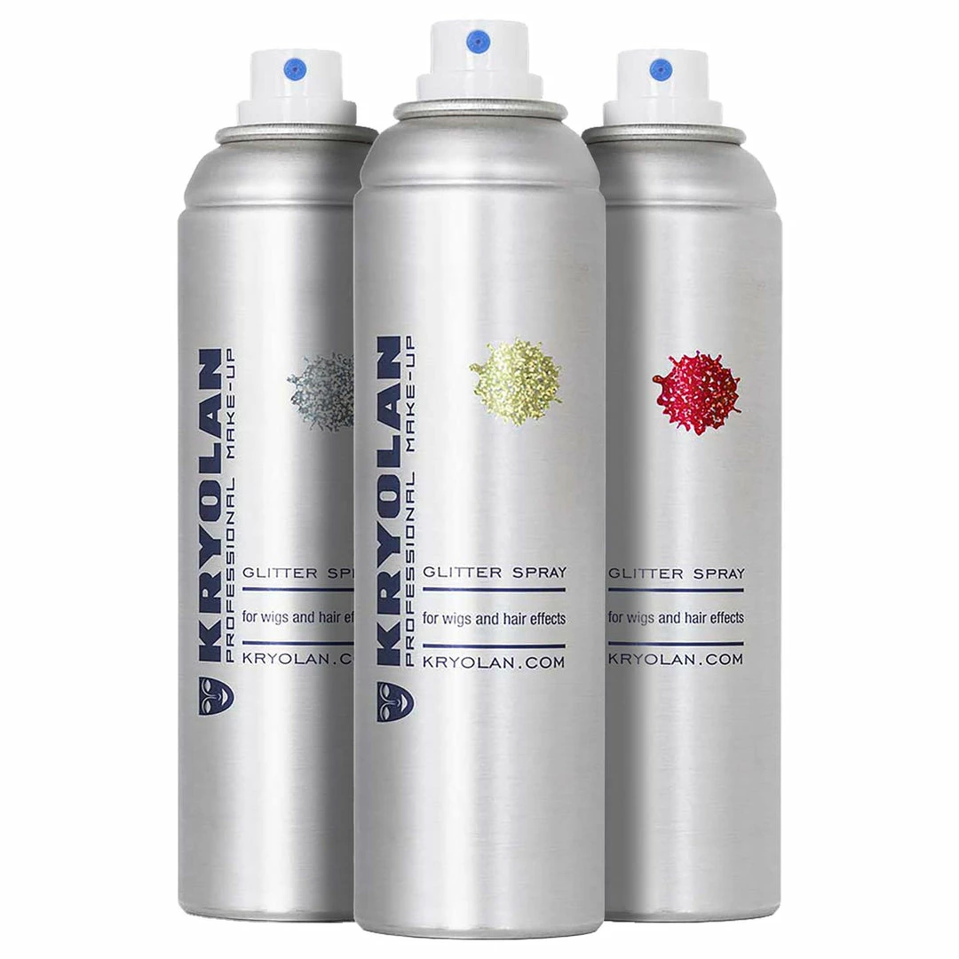 Kryolan Glitter Spray is aerosol propelled fine particles that produce a dazzling shower of metallic shimmering glitter that adheres to hair and wigs.