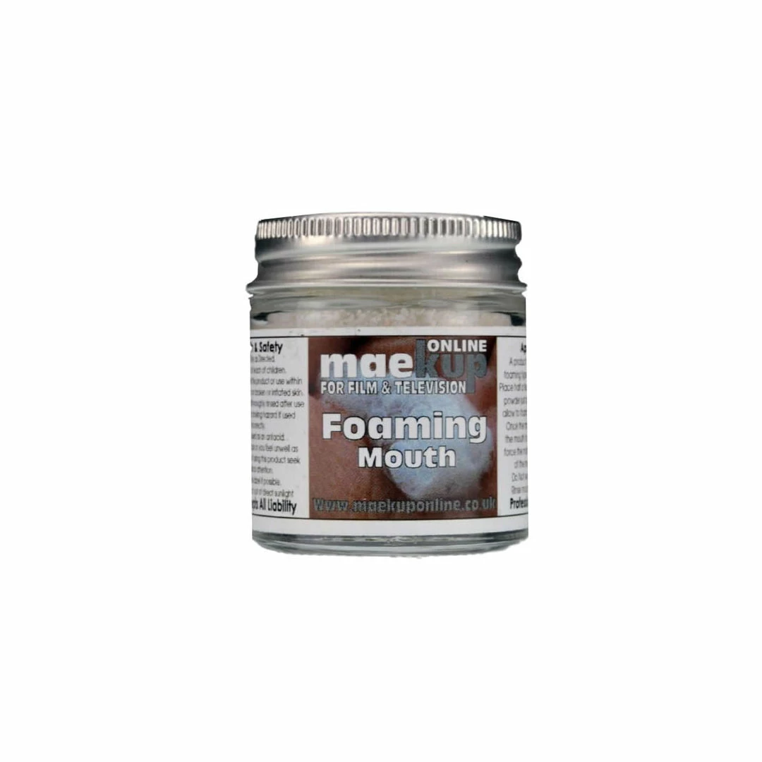 A powder designed to froth when exposed to moisture in the mouth, creating zombie, rabid or fitting type FX.