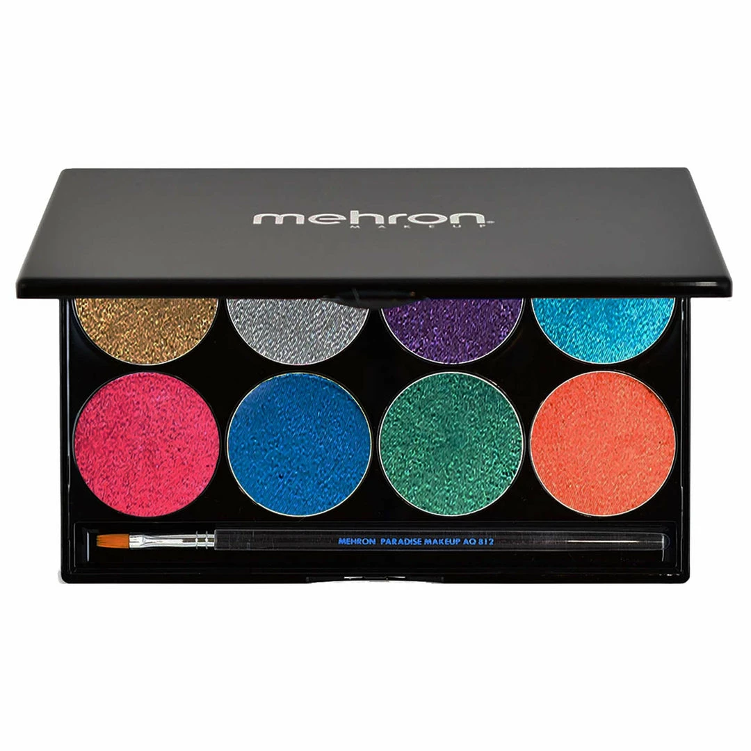 This is the Brilliant 8 Colour Palette of Mehron Paradise Makeup AQ; a metallic semi-soft, water activated cake makeup that sends face & body painting into a new dimension with its wide selection of dynamic colours. Featuring Brilliant shades with a metallic shimmery finish.