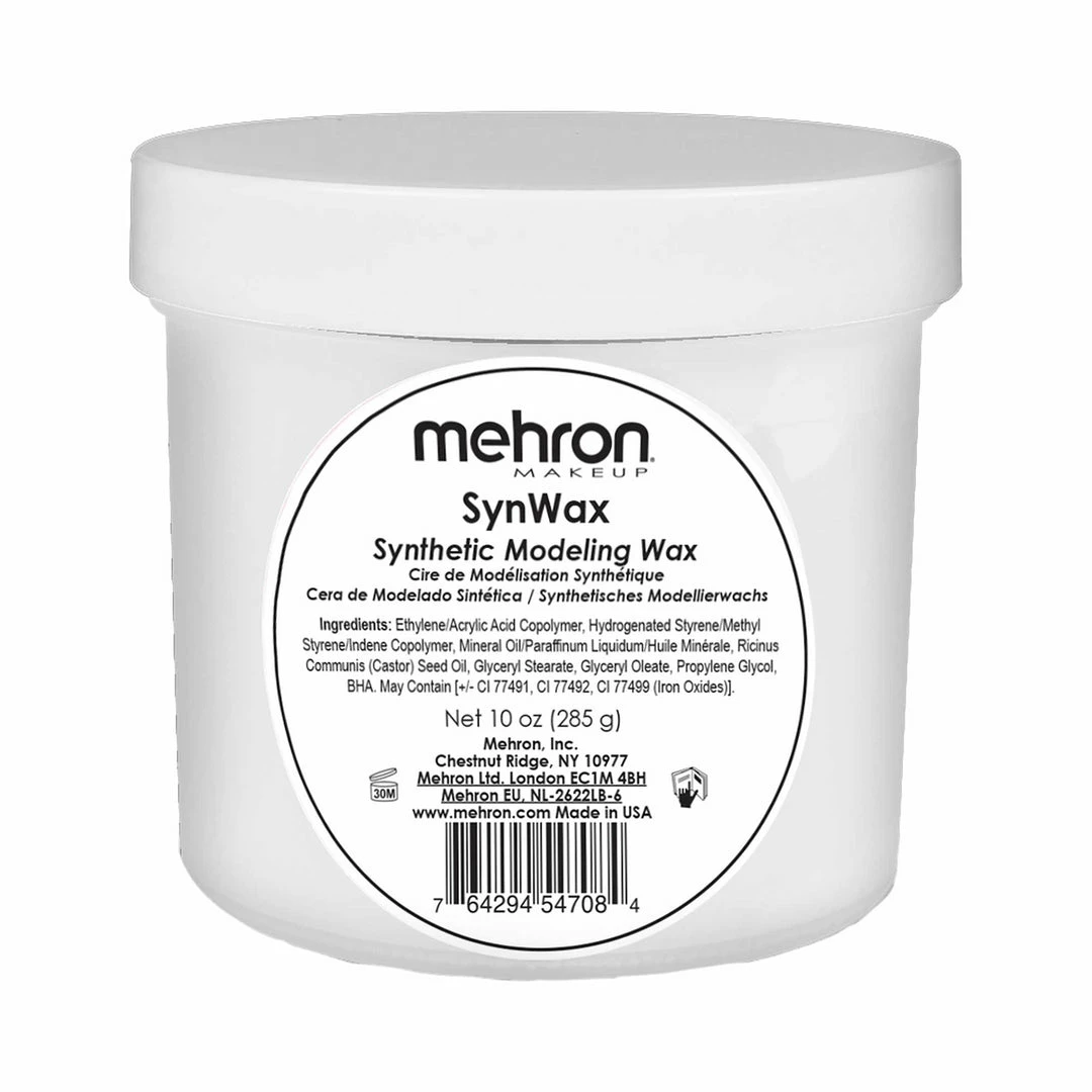 The benefits of SynWax are that it is a more pliable wax and easier to accomplish finer details than traditional Modelling Wax. Mehron Modelling Wax and Mehron SynWax are interchangeable by artists to smooth the edges of prosthetic pieces and for blocking out eyebrows or adding features to characters for performances.Â