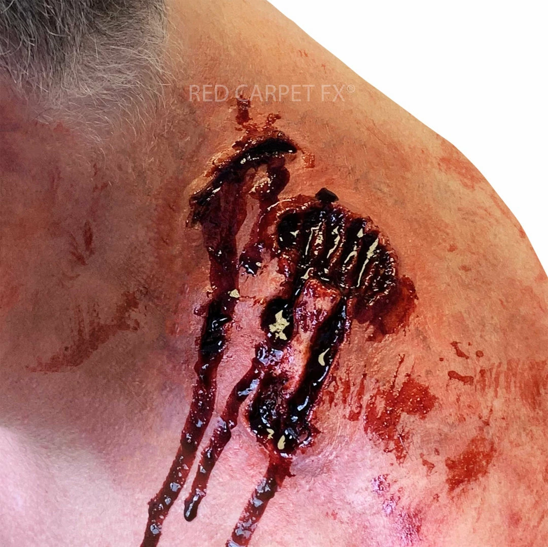 Monster FX prosthetics are high quality and highly detailed lacerations, wounds and bites available in low-cost, high skin compliance gelatine.