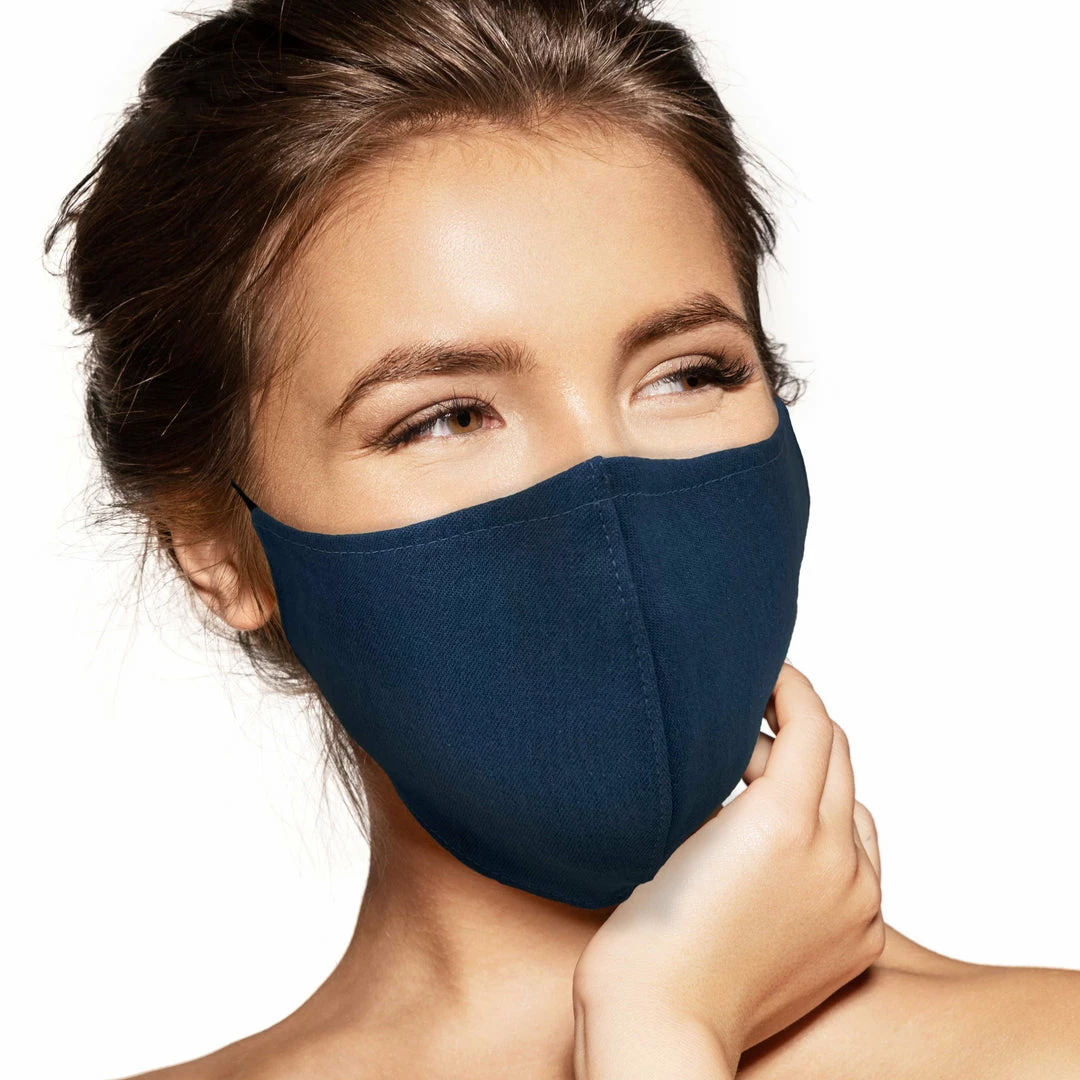Classic plain navy blue colour is ideal for all clothing, styles and settings. Introducing handmade cotton smooth contoured face masks expertly crafted by Pebbles of Leeds.