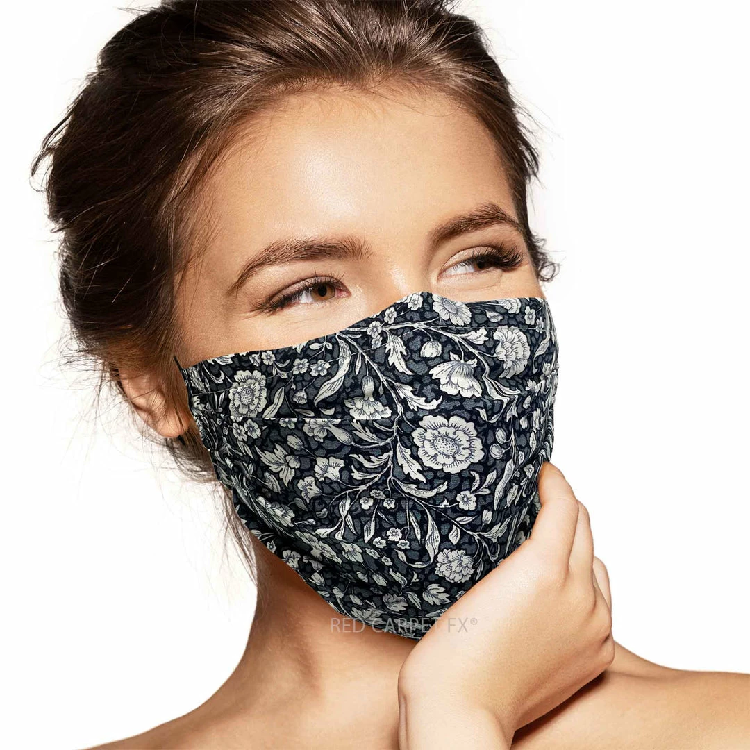 Delightful design with swirling vines, leaves and flowers in a two-tone black/white material. Introducing handmade cotton face masks expertly created by Pebbles of Leeds.