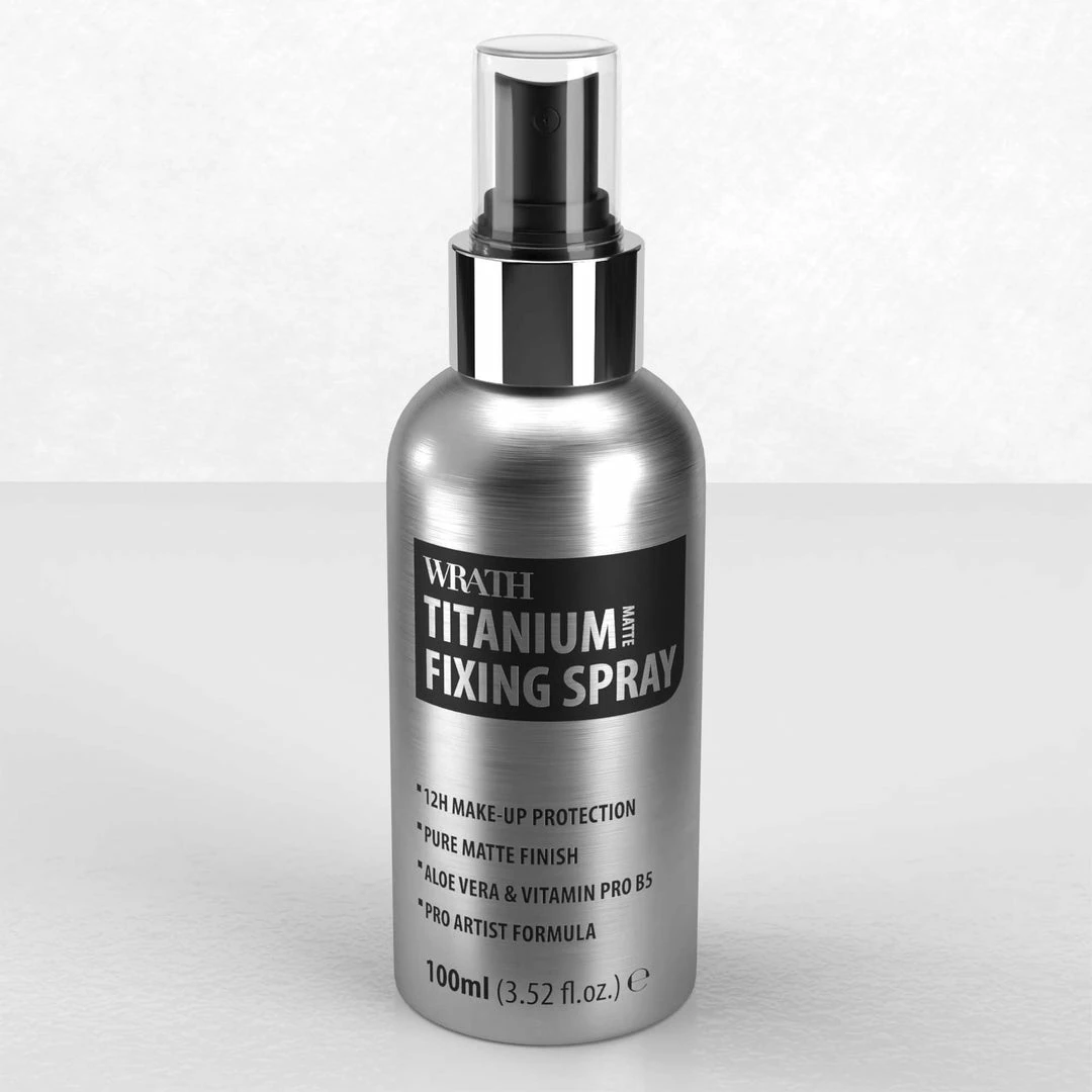 WRATH® Titanium Matte Fixing Spray is an extra strong, pure matte setting spray that features a professional make-up artist formula (with added Aloe Vera & Vitamin Pro B5). Titanium hold: incredibly strong while being incredibly light with no colour alteration.