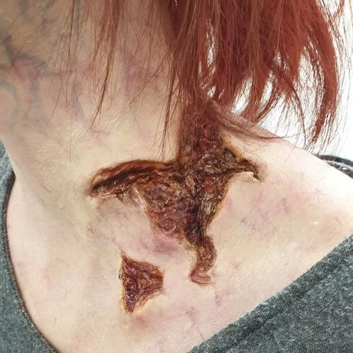 Monster FX encapsulated silicone prosthetics are high quality, highly detailed professional grade lacerations, wounds and bites made from superior grade, high precision lightweight silicone.