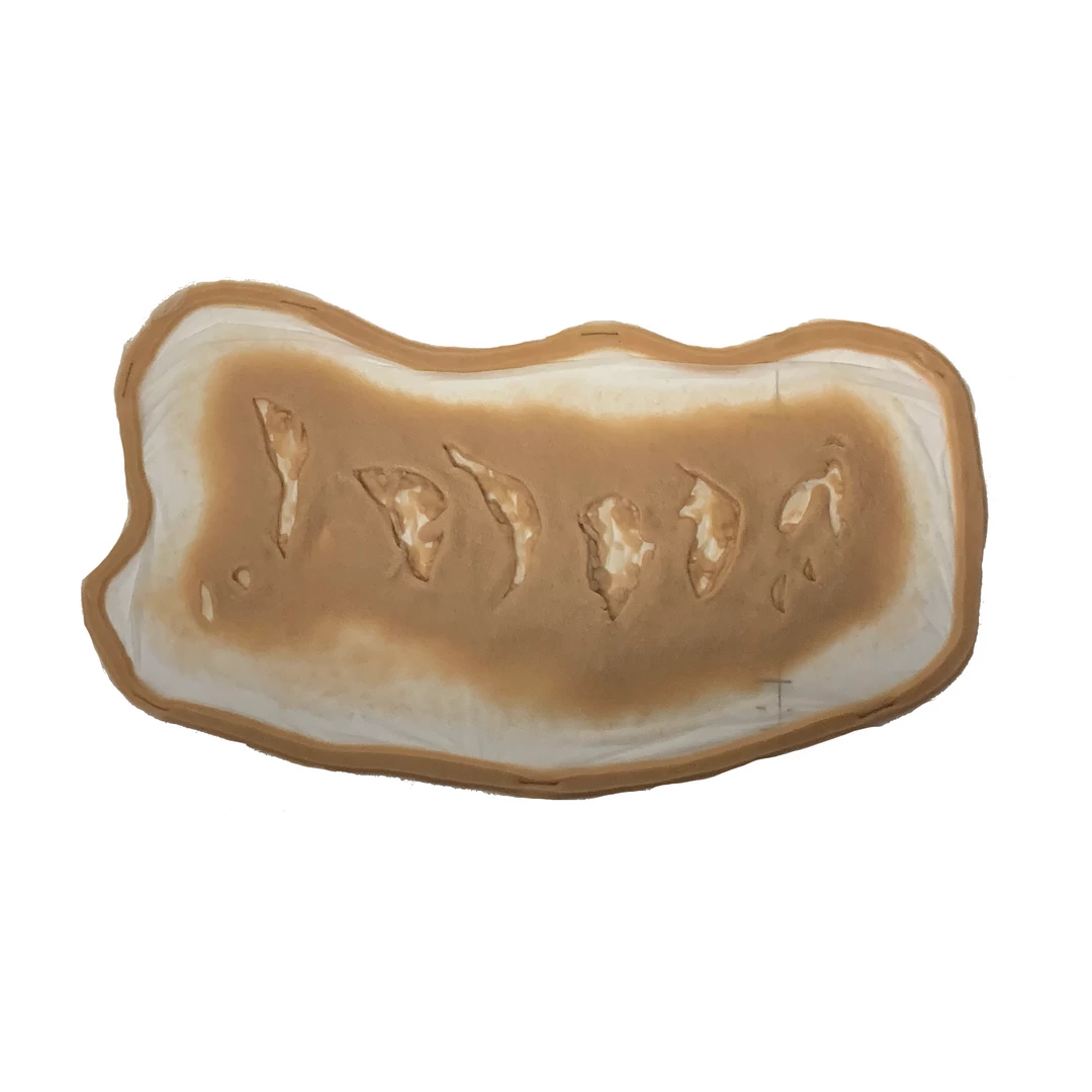 To apply the silicone version of this prosthetic, simply remove from packaging and place the prosthetic on a cleanable surface (such as a stainless steel palette). Clean the area of the skin on the desired area of appliance application; use a product that will remove excess oil from the surface of the skin (such as an alcohol based product); this will enhance the bond. Apply a silicone adhesive (such as Kryolan Silicone Adhesive) to the contact side of the prosthetic evenly and in small quantity. Apply the same adhesive to the appropriate area of skin. Allow plenty of time to dry (this is important, because any adhesive that is not dry before application will remain uncured, bubble and not bond). Once the adhesive is dry to the touch, apply the prosthetic to the area of skin; press the prosthetic in the centre, keeping the edges up (if possible) to make sure all air is removed, gently pressing down the prosthetic, working outwards. Once fully applied, apply even, high pressure to ensure the silicone adhesive is fully bonded.