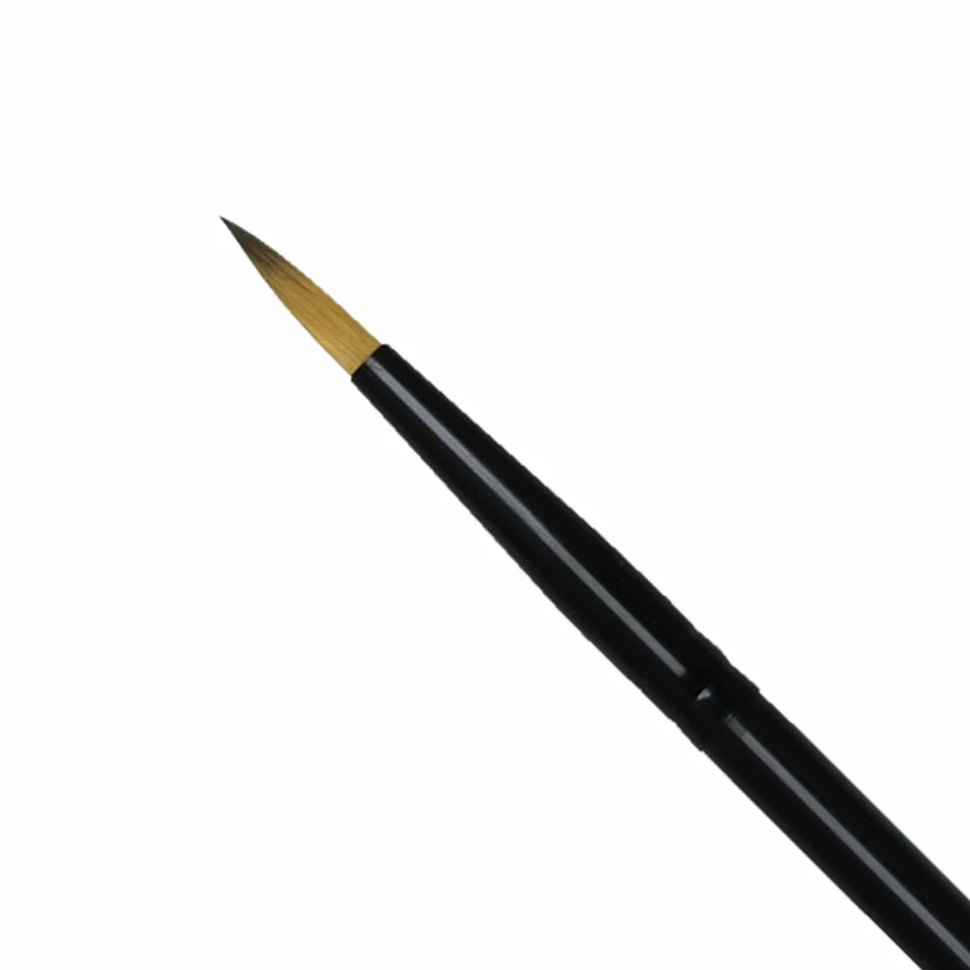 High-end styling; this brush has a matte black plastic coated handle for increased durability, a high gloss black ferrule and a two-tone brown bristle.
