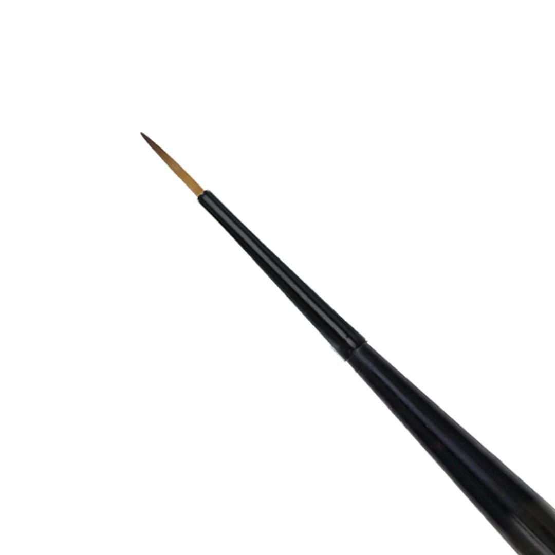 High-end styling; this brush has a matte black plastic coated handle for increased durability, a high gloss black ferrule and a two-tone brown bristle.
