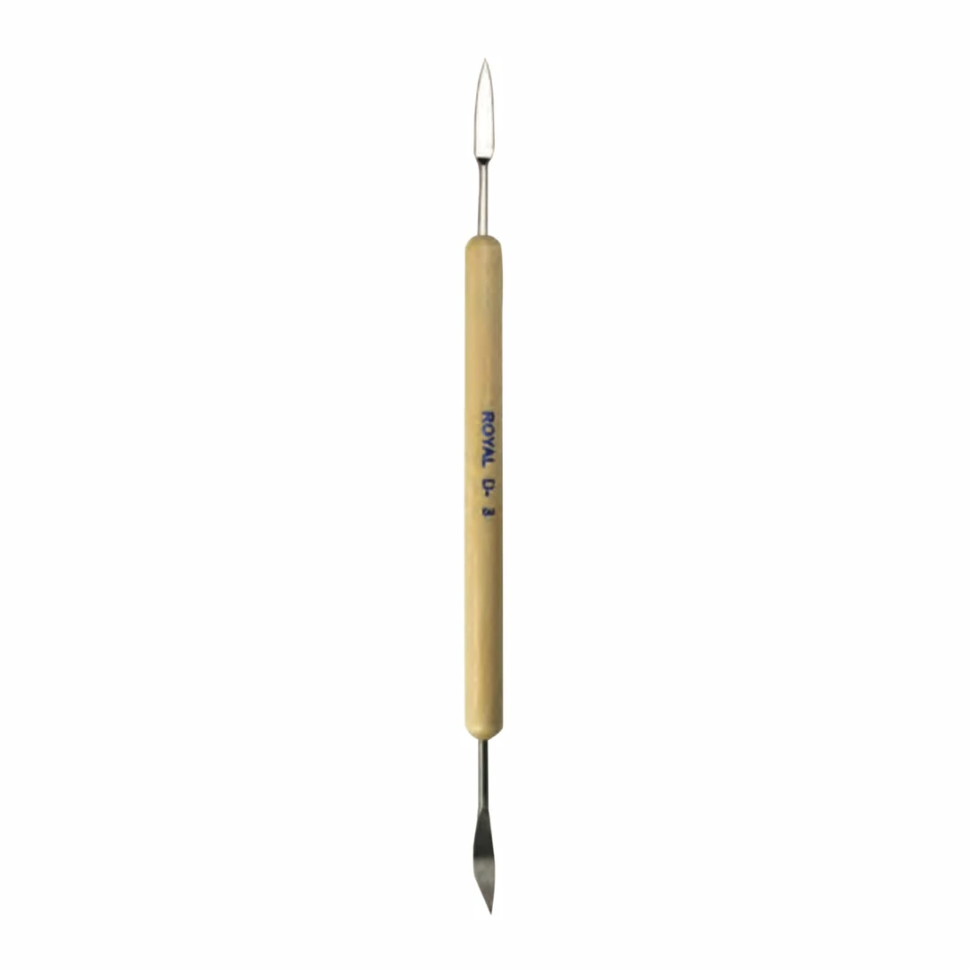 High quality finish sculpting tool with a solid wooden handle finished with metallic blue lettering and high strength stainless steel finely machined tool tips.