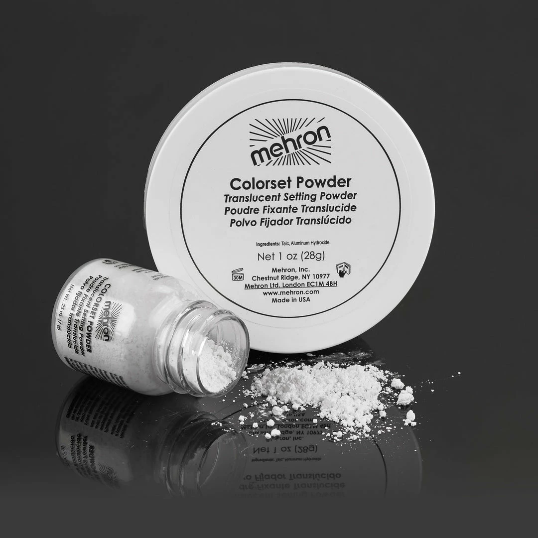 Mehron Colorset Setting Powder is used to absorb the oils from cream based makeup so that it sets and will not rub off.