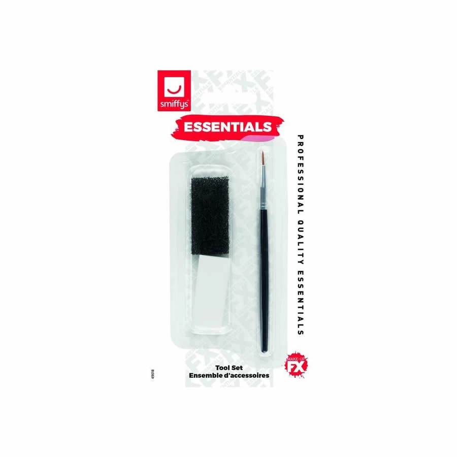 The Make-up FX Essential Equipment Set includes 3 fundamental make-up applicators. It includes 1 precision filbert face & body paint brush, 1 large pore stipple sponge and 1 cosmetic wedge sponge.