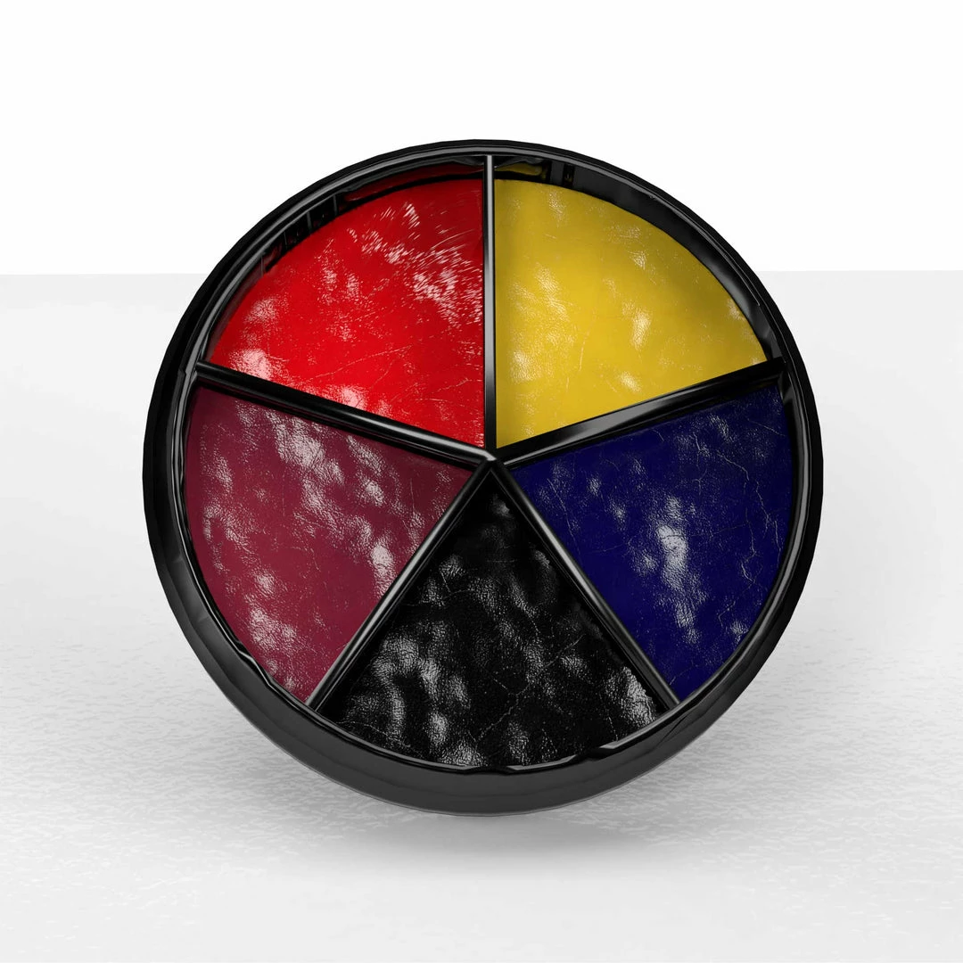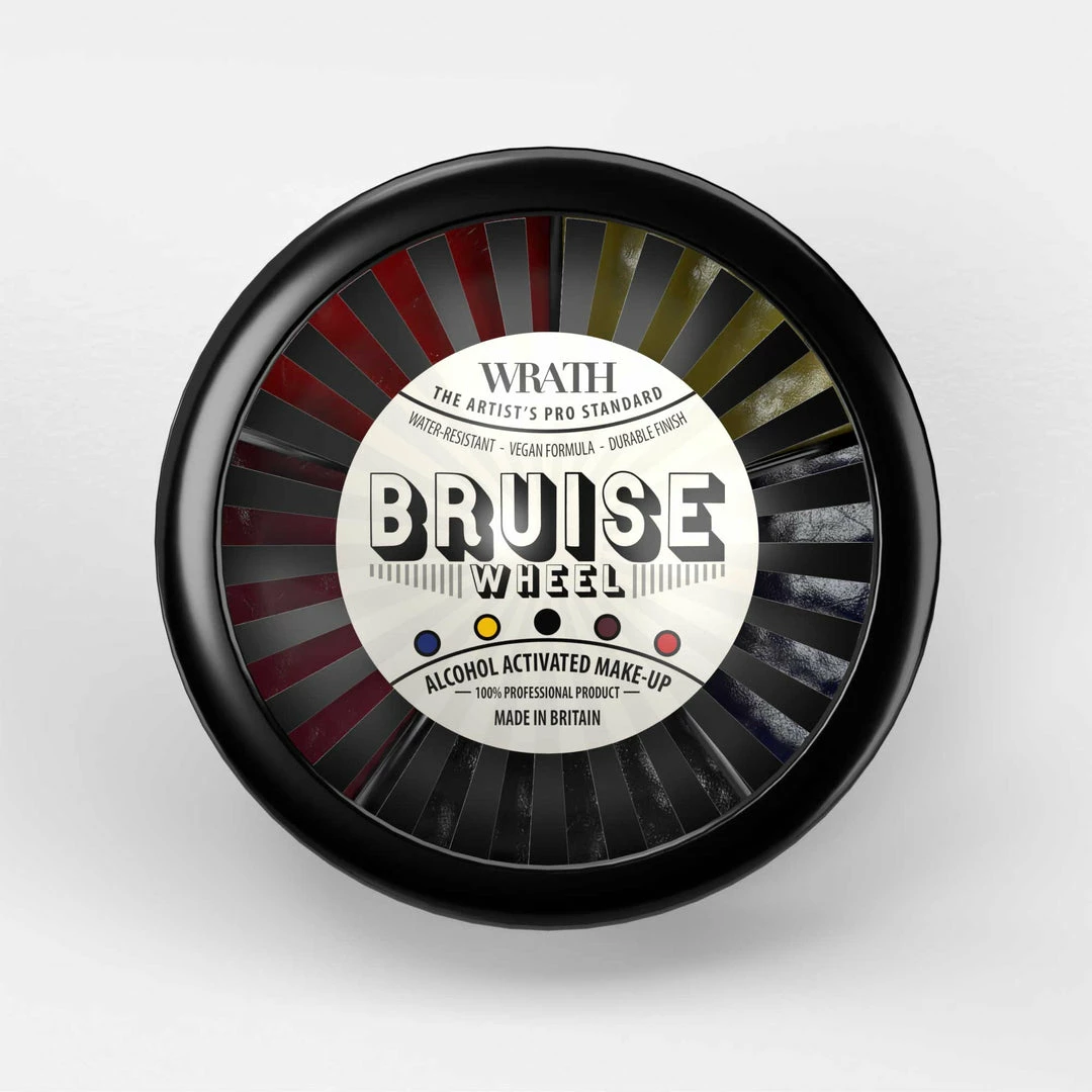 The Bruise Wheel is an handy, durable ultra-compact palette for bruising, contusion and general injury needs. Featuring red, yellow, blue, black and a deep purple. Requires WRATH Alcohol Activator to use (sold separately).